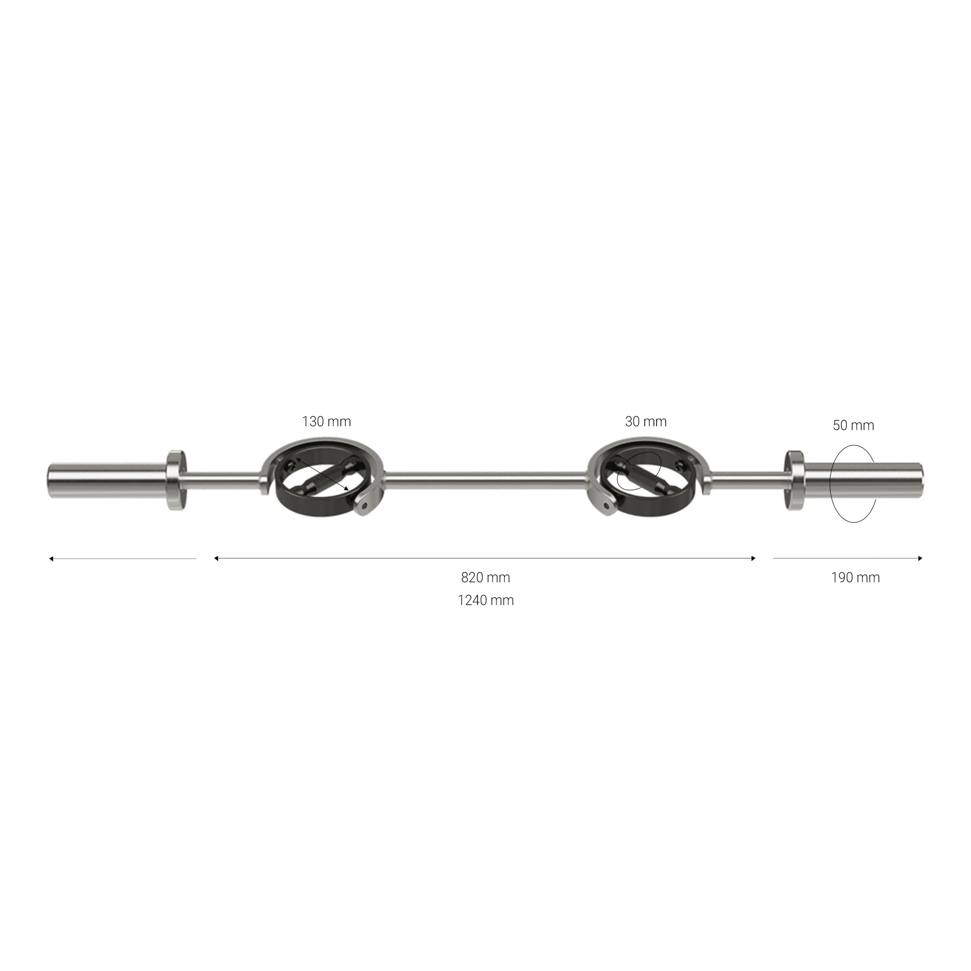 This is the ultimate barbell for biceps and triceps training. The barbell is called a Supra model, has rotating handles and is 124 cm long.