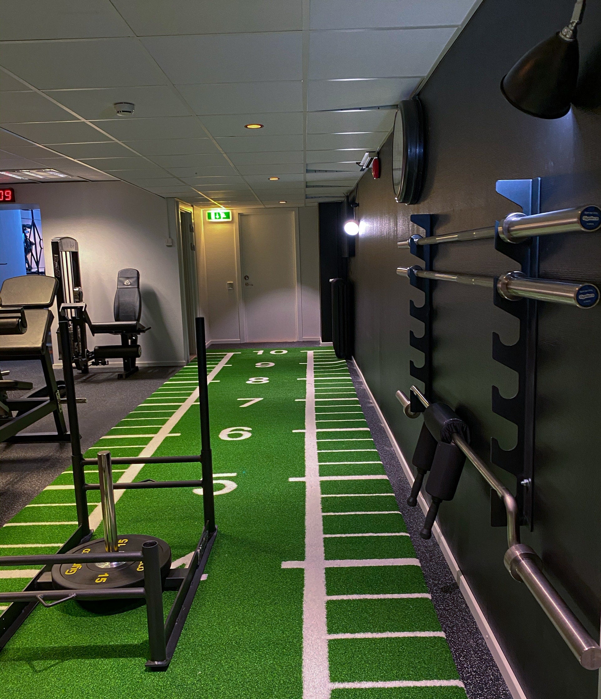 This horizontal wall mounted rack offers smart wall storage for 6 barbells. Save space and show of your barbells at the same time!